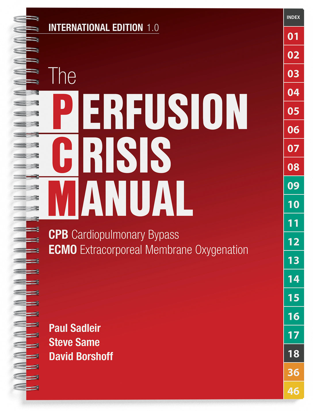 The Perfusion Crisis Manual (The PCM) is the third in the series by Leeuwin Press. It is a collection of cognitive aids presented in aviation format containing boldface actions to assist the perfusionist in crisis management.